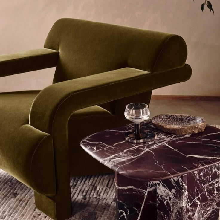 Marmer is tijdloos. Dónker marmer geeft een interieur direct een gelaagde, verfijnde uitstraling. In diepe, moody tinten vormt marmer een krachtig contrast met zachte stoffen en warme materialen. Een uitgesproken keuze die perfect past binnen een modern interieur met retro invloeden en een luxe signatuur.